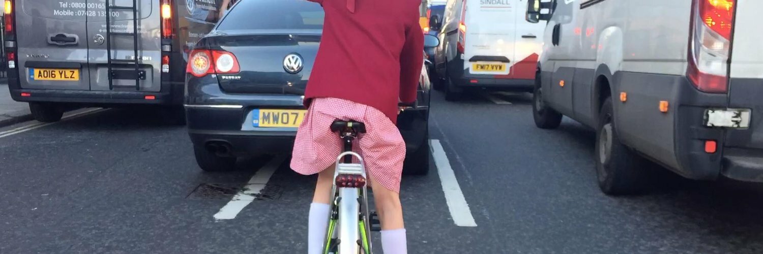 Banner Pic: my daughter cycling to school on one of Camden’s cycle lanes.